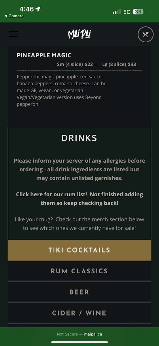 Maipai Menu (2025 Update)